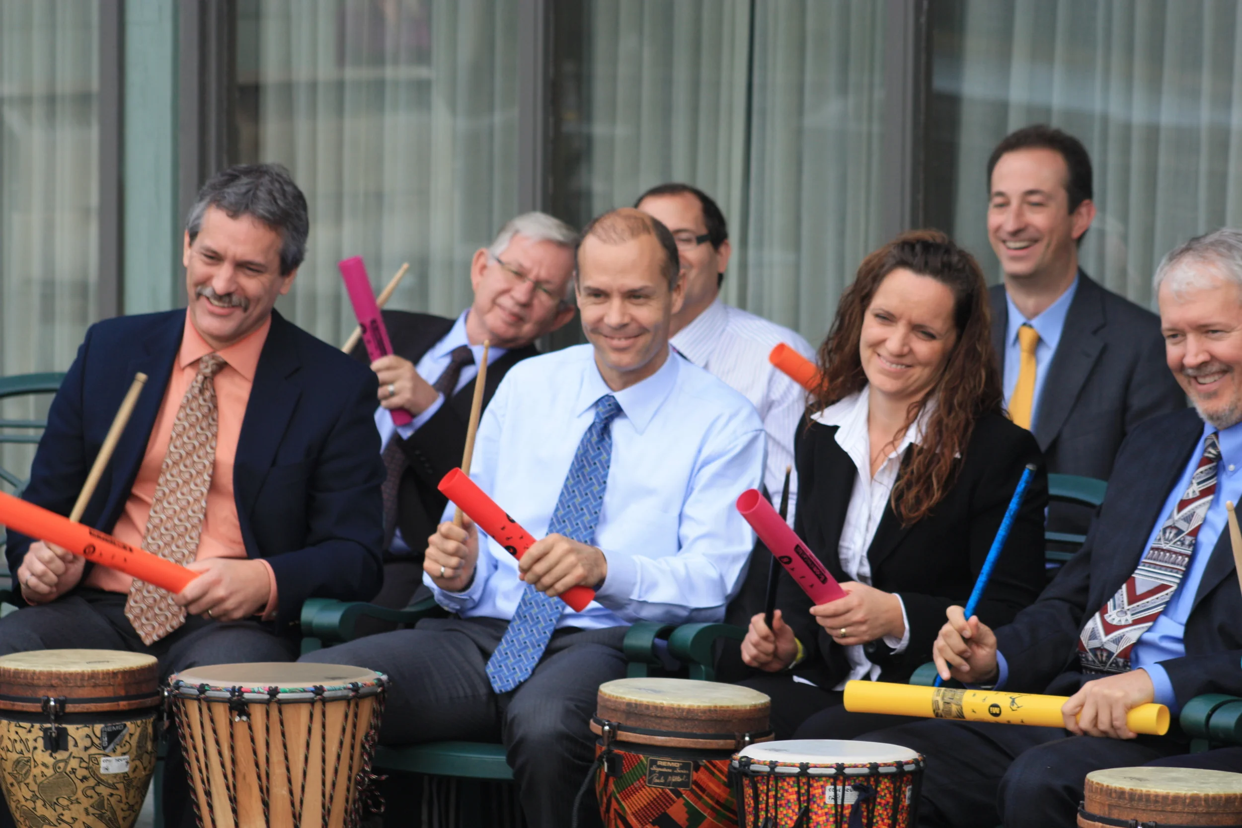 To customize this program, we use your thoughtful responses to our questionnaire. This information is compiled to assess “key core values” that will be addressed during the event. We take nouns and transform them into verbs or into rhythmical inter-actions that will empower your team to have a sustained relationship with your corporate vision. As the event unfolds, the drum circle will progress from seeming cacophony to a satisfying musical experience. Using Human Rhythmic Energy ™, we learn our core values are related and come to understand that the whole group cannot become effectively cohesive without each individual’s diverse contribution. In the final analysis, we realize that the journey is not about the quality of the drumming, it’s the journey, the teams vision, the teams mutual dependence - in the business world as in the musical ensemble, each member brings a valued contribution to the whole. Come maximize your team’s potential under the direction of masterful teachers, facilitators and performers!